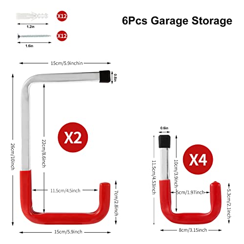 Ganci da parete Ganci da soffitto in metallo Garage e officina per scale, Ganci metallici per attrezzi da giardino, scale, biciclette, sedie, tubi flessibili e oggetti ingombranti (confezione da 6)