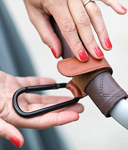 Ganci Passeggino, Ganci per Passeggino Universale Sicuri Resistenti, Moschettoni Per Carrozzina Bici Auto Carrello Appendi Sacchetti Borsa Zaino(marrone, in Pelle, 2 Unit)