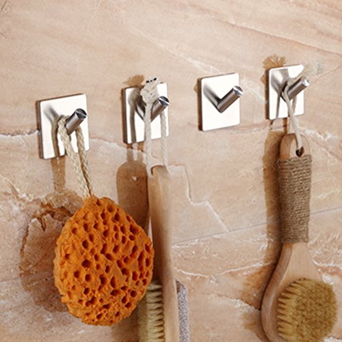 Ganci Portasciugamani Acciaio Inossidabile Spazzolato 4PCS Adesivo Strisce Bagno, Piastrelle, porta di vetro, Cucina per Armadi Accappatoio Ganci Asciugamano Gancio da Bagno Ganci