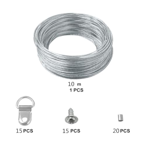 Design Pratico: Il filo per quadri per impieghi gravosi è intrecciato da diversi cavi sottili. Sono robusti e resistono al peso della maggior parte delle cornici. Facile da torcere e tagliare in qualsiasi dimensione per soddisfare le esigenze quotidiane. Il filo per quadri per impieghi gravosi può essere utilizzato anche per interni e all'aperto.