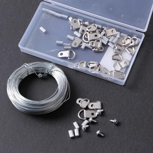 Contenuto della Confezione: Riceverai 15 ganci per appendere quadri con anello a D, 15 viti, 20 manicotti di aggraffatura in alluminio e 1 pezzo di filo per appendere quadri da 30 m. Con una scatola trasparente, facile da riporre e trasportare. Il kit di ganci per quadri con anello a D può soddisfare la maggior parte delle esigenze di appendere quadri nella vita quotidiana.