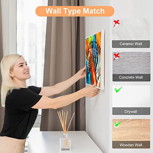 【Senza Perforazione, Installazione Facile】 Basta inchiodare il gancio della cornice sul retro della cornice e appenderlo al gancio. I chiodi lunghi sono adatti per pareti sciolte, i chiodi corti sono adatti per pareti più dure. Puoi prima praticare un foro con un trapano se hai problemi a infilare il chiodo nel muro. (Nota: Non utilizzare il chiodo su pareti di vetro, piastrelle o cemento.)