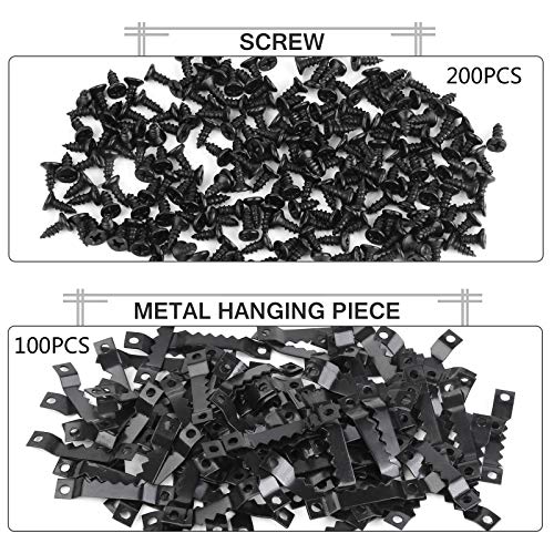 Contenuto della confezione: 100 ganci per quadri (lunghezza: 40 mm, larghezza: 7 mm, profondità: 4 mm), con 200 viti (7 mm), ordinati e ordinati in una scatola di plastica con scomparti, facile da trasportare e riporre.