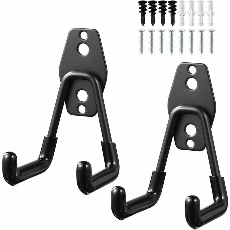 Perfetti per riporre attrezzi, inclusi oggetti pesanti come una sedia pieghevole, una scala telescopica, tubi da giardino, pale da neve, ecc., rendono il tuo garage uno spazio molto più ordinato. I nostri ganci da parete si fissano in modo rapido e pulito a cartongesso, montanti e altri tipi di pareti. Per installare i ganci a U, è sufficiente posizionare la punta degli ancoraggi in plastica nel punto contrassegnato e serrare la vite utilizzando un cacciavite. Realizzati in ferro resistente, i nostri ganci possono sostenere in sicurezza fino a 40 libbre se installati correttamente per ogni gancio. La confezione include: 2 ganci a doppia parete (nero, 11 x 7 x 1 cm)