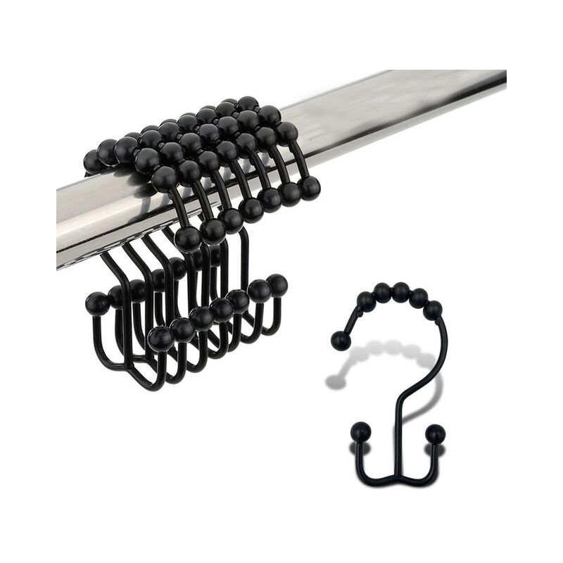 Senza problemi. Questi ganci caratteristica appositamente progettato sferica palle per ridurre l'attrito e lasciare senza sforzo scivolando attraverso la canna, praticamente senza sforzo a tutti.Doppia doccia ganci-Il doppio ganci tenda della doccia potrebbe appendere sia tenda della doccia e la fodera. La tenda della doccia anelli sono abbastanza forte per tenere un pesante tenda e la fodera.In acciaio inox-Il heavy duty in ottone e costruzione in acciaio inox resistente permette di anni di utilizzo nel duro bagno elementi. Il materiale in acciaio inox è di metallo non magnetico, il che significa che durerà al chiuso e all'aperto senza la formazione di ruggine.Placcato e lucido-in acciaio è placcato senza ruggine materiale e lucidato con finitura nero opaco. I ganci look classico, l'aggiunta di un molto elegante look a qualsiasi stanza da bagno.Set di 12-Venduto come un insieme di 12 anelli tenda della doccia. Misura
