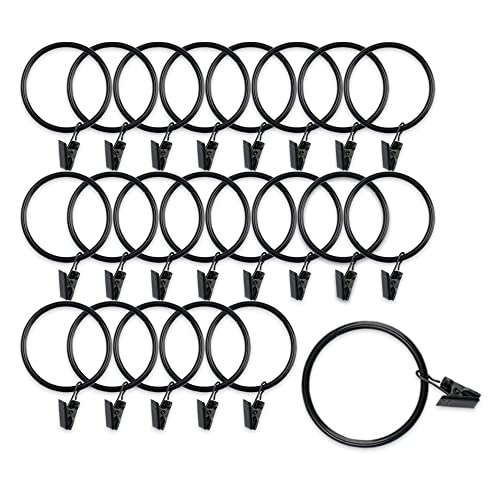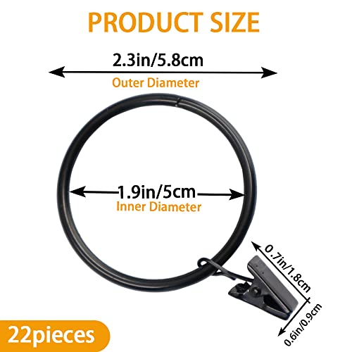 22 ganci per tende di grandi dimensioni in metallo, resistenti alla ruggine, con anelli, diametro interno 5 cm, colore nero (22 pezzi)