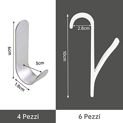 Ganci per Termoarredo Bagno-6 pezzi Appendini per Termoarredo e 4 pezzi Ganci Adesivi per Asciugamani in Acciaio Inox Ganci Portasciugamani Bagno/Gancio Adesivi per Asciugamani/Gancio Scaldasalviette