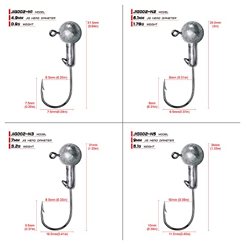Contenuto della confezione: 10 ganci a testa di piombo per peso 1G/2G/3.5G/5G/6G/7G/9G.