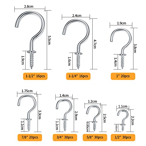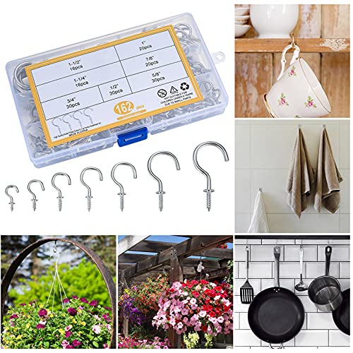Contenuto della confezione: riceverete un totale di 162 ganci in metallo da avvitare, in 7 misure: 1-1/2";