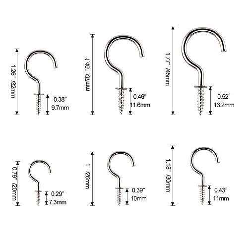 6 misure: le nostre dimensioni del prodotto sono 2 cm, 2,5 cm, 3 cm, 3,5 cm, 4 cm, 4,5 cm e sei lunghezze, diverse dimensioni sono adatte per appendere diversi oggetti. La dimensione del gancio è diversa e anche la capacità portante è diversa. Si prega di prestare attenzione a utilizzare un grande gancio per appendere oggetti pesanti.