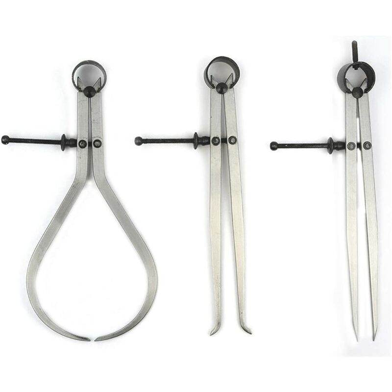 I calibri esterni sono un utile strumento di trasferimento delle misurazioni per lavorare con materiali rotondi o di forma irregolare e quindi trasferire la misurazione su un righello. I calibri interni sono ottimi per misurare le aperture del diametro interno, quindi trasferire la misurazione su un righello Il divisorio a piede piatto è un utile strumento di trasferimento delle misure per superfici irregolari;