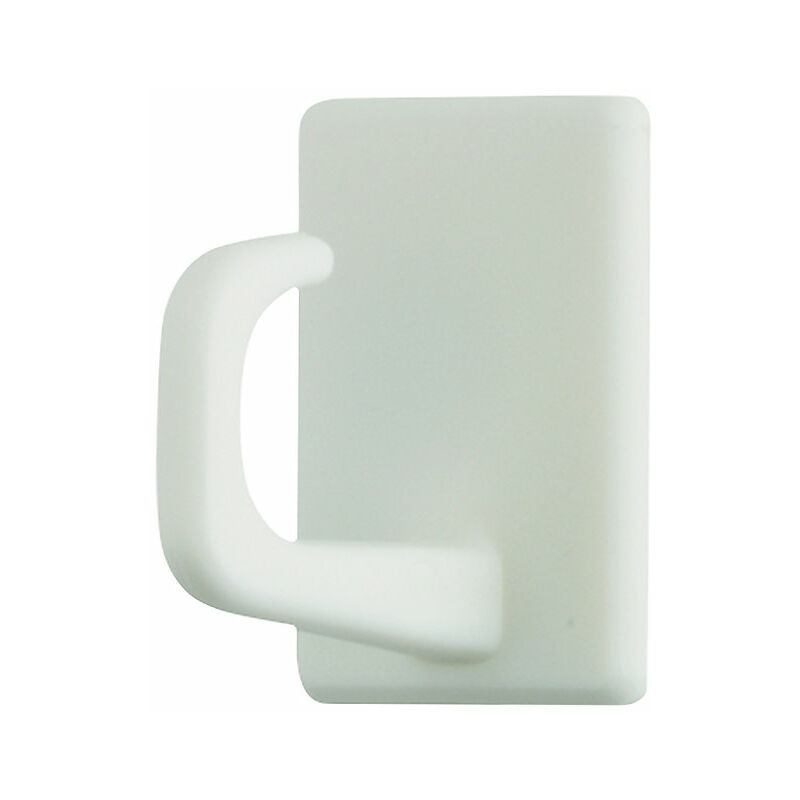 Da fissare al muro con strato adesivo incluso in confezione. Gancio adesivo per cucina Realizzato in plastica, colore bianco, da fissare al muro con strato adesivo incluso in confezione.