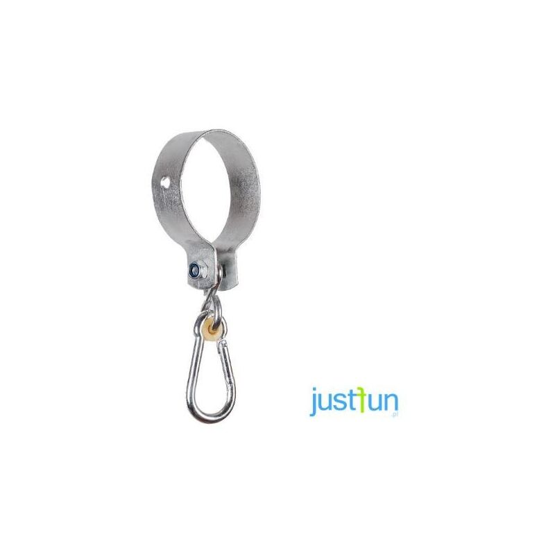 Moschettone incluso Compatibile con la maggior parte delle altalene Facilità di montaggio Realizzato in acciaio zincato Resistente alle condizioni meteorologiche e alle radiazioni UV Dimensioni facia:3,5cm Diametro foro posto su fascia:1cm