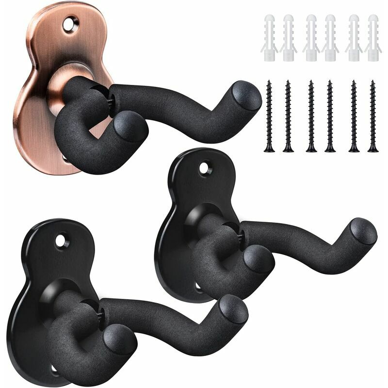 Design speciale: questo gancio per chitarra è un accessorio perfetto per posizionare strumenti a corda. La base della forma della chitarra è realizzata in acciaio al carbonio di alta qualità, che può sopportare 40 libbre di tensione, parti di chitarra incorporate nei ganci per chitarra da parete, appositamente progettati per gli amanti della chitarra. Taglia unica: la chitarra il supporto a parete può ruotare in qualsiasi modo, quindi si adatta a dadi per chitarra sbilanciati e qualsiasi strumento musicale con precisione, non devi preoccuparti delle dimensioni della tua chitarra.,Protezione completa: il supporto in acciaio metallico fornisce una presa stabile per i tuoi strumenti in modo sicuro, coperto con spugna antigraffio per proteggere gli strumenti dai graffi. Con un design ad arco profondo, il supporto da parete per chitarra può garantire che lo strumento pertinente sia posizionato correttamente.,Ampia applicazione: adatto per la maggior parte degli strumenti a corda, come