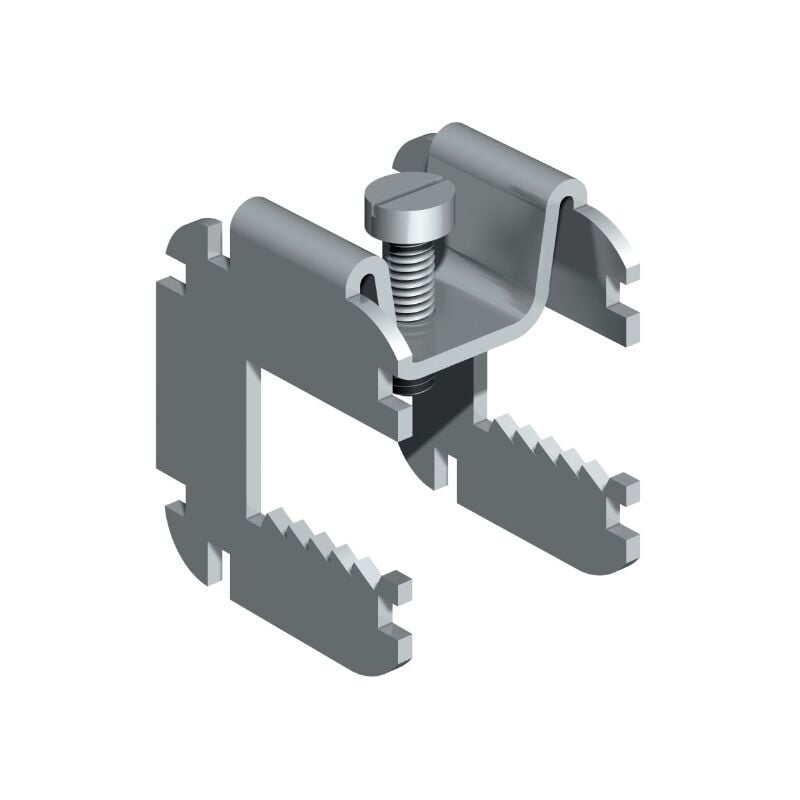 Gancio di Fissaggio su Putrelle con Spessore Massimo di 16 mm - Confezione 10 Pezzi DESCRIZIONE PRODOTTO Prodotto realizzato in acciaio zincato utilizzato nel rivestimento di putrelle. Il posizionamento dell'accessorio avviene per accoppiamento sull'ala della putrella tramite il bloccaggio della vite di fissaggio e la dentatura del prodotto. Spessore lamiera: 18/10 mm Reazione al fuoco (EN 13501-1): A1 Spessore putrelle (mm): MAX 16