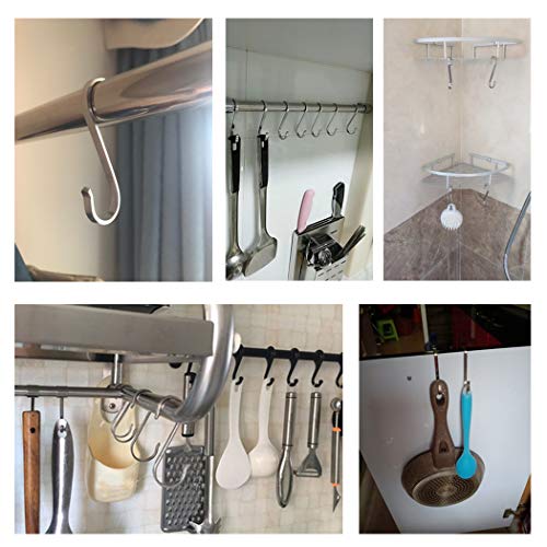Usi multipli: Ganci S molto pratici, possono essere utilizzati sia all'interno che all'esterno in qualsiasi condizione climatica. Padelle, pentole, tazze da caffè, anche asciugamani, presine, utensili kithen per organizzare la tua cucina, organizzare i tuoi vestiti e gioielli. In bagno per appendere strofinacci, loofas, spazzole per il corpo, articoli da toeletta, asciugamani e accappatoi senza viti o adesivi, organizzare gli attrezzi nel garage e appendere le piante nel vostro giardino.