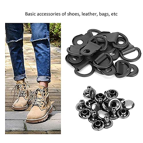 100 Set Gancio per Lacci per Scarpe 9x14mm Kit di Attrezzi per Occhielli con Fibbia a Occhiello a D Ganci per Stivali in Ottone Borsa in Pelle Fai da Te per riparazioni Campeggio