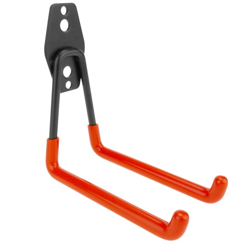 Staffa con due ganci a muro curvi. Grazie ai suoi elastici arancioni antiscivolo, gli oggetti appesi non vengono danneggiati o graffiati. Per l'uso in garage, magazzini, magazzini, ripostigli, magazzini, terrazze, balconi, ecc. come appendiabiti e organizzatore di tutti i tipi di oggetti. Caratteristiche del prodotto: DESIGN: gancio curvo nero con un angolo di 90 gradi. Dispone di una piastra con 4 asole per il fissaggio a parete secondo mattone o cartongesso. Grazie alle sue due coperture protettive antiscivolo in gomma arancione, gli accessori non scivolano. INSTALLAZIONE: Il montaggio avviene in pochi secondi, è sufficiente fissare la base alla parete utilizzando tasselli e viti inclusi. MATERIALE: Gancio realizzato in acciaio di prima qualità che ne garantisce resistenza, durata e longevità. IDEALE: Per installare a parete o cartongesso e appendere tutti i tipi di oggetti pesanti come attrezzi, accessori, biciclette, scale, pale, ecc. MISURE: Il gancio misura 60 mm di larghezza
