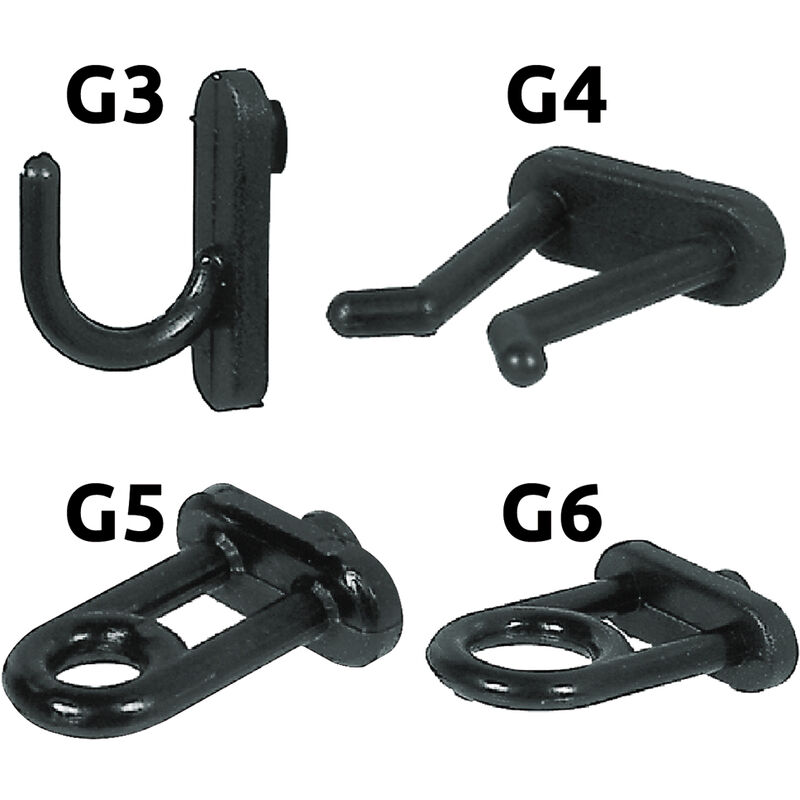 GANCIO IN NYLON PER PANNELLI PORTAUTENSILI G6 - pz 10 In blister. Modello:G6 - pz 10 Codice Prodotto:DFL=050610 Marca:KONCRETO Con Codice EAN: Altre Foto: KONCRETO
