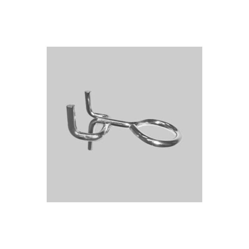 In ferro nichelato 3,8 mm. Aggancio a forchetta int. mm.25. Gancio per pannello forato tipo 'occhiolo' - Pannelli portautensili e ganci