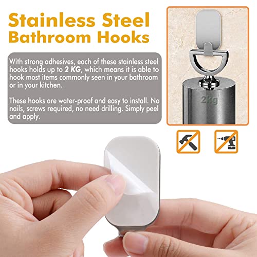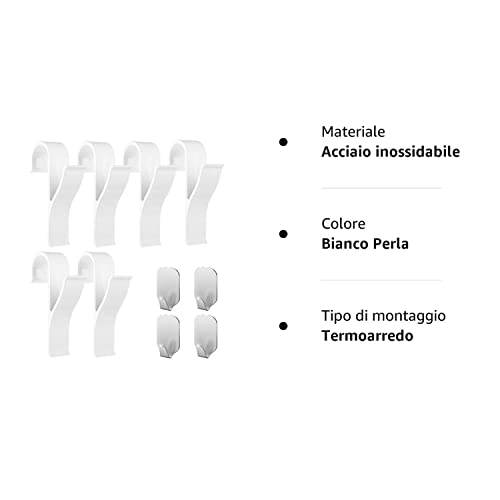 Ganci adesivi in acciaio inossidabile (4 pezzi) per oggetti con un peso inferiore ai 1.5 kg, non è necessario perforare la parete o avvitarli.