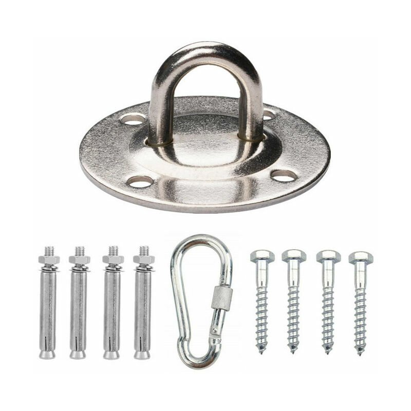 Abbinamento robusto - : i nostri ganci sono realizzati in acciaio inossidabile 304 di alta qualità, che non è arrugginito, non corrosivo e ha un'elevata durezza . Con una capacità di carico di oltre 100 kg, è adatto a bambini, adulti e tutti gli altri spazi abitativi. [Per pareti in cemento e legno]: contiene 4 viti in metallo e 4 viti in plastica, puoi usarle per soffitti in cemento e soffitti in legno. Ma non è adatto per soffitti in cartongesso, pareti di fango o altri materiali da costruzione morbidi. [Ampia applicazione]: adatto per uso interno ed esterno, molto adatto per sedie sospese, lampadari, altalene, altalene, amache, sacchi di sabbia, imbracature, asciugamani per yoga, imbracature, ecc. [Facile da installare]: tutto d Innanzitutto, preparare due fori preforati per l'avvitamento su travi di legno o cemento. Caratteristiche: Caricabile fino a 100 kg Acciaio inossidabile Design con rotazione di 180° Moschettone con filo rotante Forte e sicuro, multifunzionale Resistente