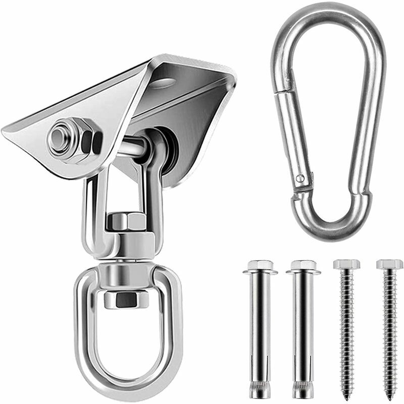 Descrizione Materiale superiore: i nostri appendiabiti a battente sono realizzati in acciaio inossidabile 304 di alta qualità, senza ruggine, resistenza alla corrosione, elevata durezza, ambiente non tossico e privo di inquinamento, adatto per uso interno ed esterno esterno. . Sicurezza e robustezza: le robuste grucce oscillanti sono progettate per l'uso da parte di bambini e adulti e la loro capacità di carico è fino a 450 kg, che viene utilizzata in modo sicuro e sostenibile. . Design con rotazione a 360°: il gancio girevole consente una rotazione libera di 360°, che può prevenire grovigli o torsioni. Il design innovativo lo rende più flessibile da usare e può essere utilizzato più ampiamente. . Facile da installare: abbiamo preforato due fori per fissare i bulloni alle travi in legno o ai soffitti in cemento Include 2 ancoraggi per cemento e 2 bulloni a testa esagonale e uno unico- design del pezzo e può essere installato in pochi minuti. . Ampia applicazione: questo gancio