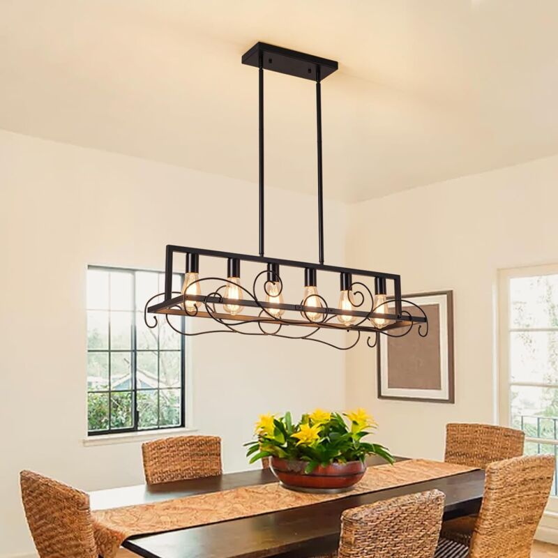 Dimensione Del Lampadario —— Dimensioni del lampadario: telaio: 11,81''(30 cm) X 4,72''(12 cm) X 0,98''(2,5 cm), corpo illuminante: 33,86''(86 cm) X 10,63''(27 cm) X 10,24''(26 cm), lunghezza del cavo a sospensione regolabile 48in/122cm. È possibile regolare l'altezza lampadario in base ai diversi scenari e alle effettive esigenze. Design in Stile Rustico Retrò —— Questo lampadario cucina combina perfettamente la moda moderna con la bellezza antica, mostrando uno stile country moderno. Il disegno del motivo a vite sulla struttura metallica aggiunge un senso di gerarchia e abilità artistica alla lampadari. Elegante e bello, questo lampadario cucina vintage classico da cascina è adatto a una varietà di stili e decorazioni d'interni, compresi gli stili moderni e rustici. Alta Qualità —— La struttura del corpo del lampadario cucina rustico e il telaio sono realizzati in metallo di alta qualità, che ha buone prestazioni, non è facile da danneggiare ed è facile da pulire. Inoltre, il