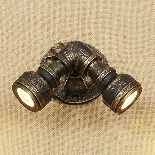 Ganeep Steam Punk Loft Industriale Lampada da parete Tubo di ferro dell'acqua Vintage 2-Luci LED Applique Applique da parete Per soggiorno Comodino Apparecchio da interno Illuminazione Faretti a paret