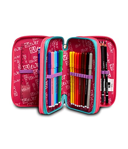 SJ Gang Astuccio 3 Zip Sj Ever, Rosa, Coompleto Di Matite, Pennarelli, Scuola y Tempo Libero
