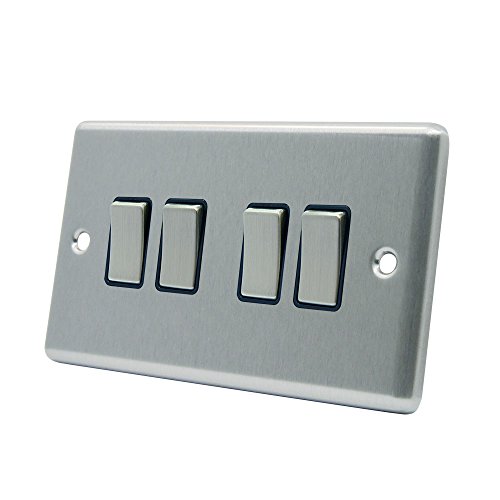 4 Gang-Interruttore luce, colore: cromato opaco, in metallo, colore: nero-Interruttore a bilanciere, 4 Gang, 2 Vie, 10 Amp
