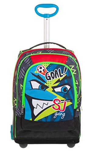 Sj Gang Big Trolley Facce da SJ, 33 Lt, Nero, Sistema 2in1 Zaino con Sollevamento Spallacci per uso Trolley, Scuola & Viaggio
