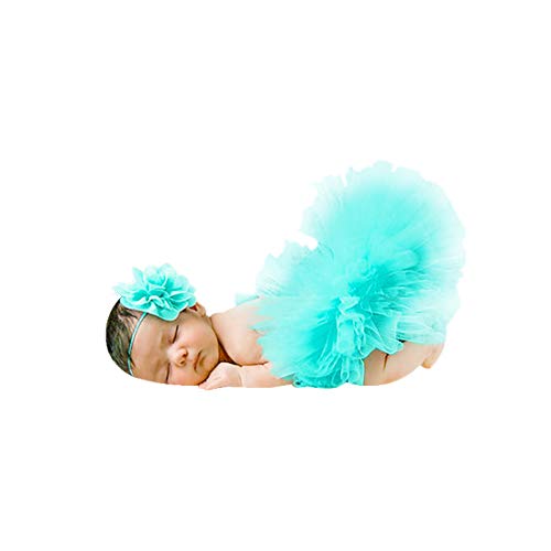 Gankmachine Cute Princess Newborn Fotografia Props Infante Costume dell'attrezzatura con Girl Dress Summer Flower Fascia del Bambino Blu 0-24m
