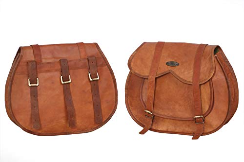 Ganpati Handicraft - 2 borse laterali per moto, in pelle, misura grande, colore: Marrone 12 altezza 15 lunghezza 6 larghezza (pollici)