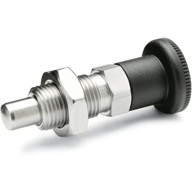 Ganter Norm, con elementi in acciaio inox di Resto Bulloni - GN 817, senza resto Blocco, Acciaio Inox, Resto di chimicamente nichelato, 1 pezzi, nero, GN 817-6-9-BK-NI