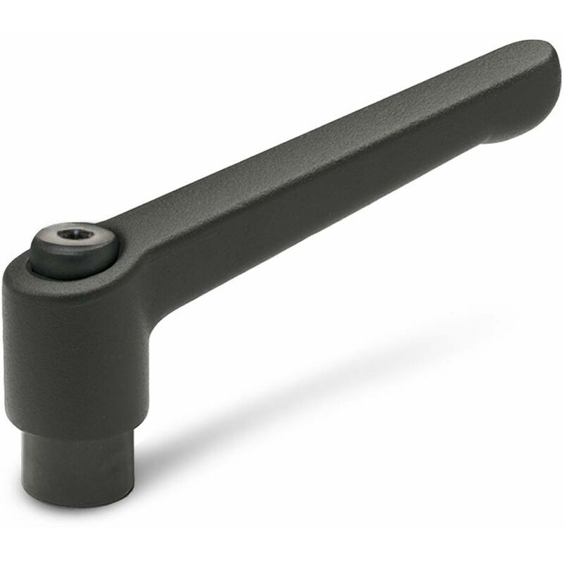 Manico lunghezza l1: 108 mm, altezza T D1 filettatura: M14, lunghezza filettatura: 22 mm, h: 75 mm Con filettatura femmina Manico corpo: zinco pressofuso, rivestimento in plastica: Nero, RAL 9005 strukturmatt Filettatura femmina e sembra vite: acciaio brunito Conforme a RoHS
