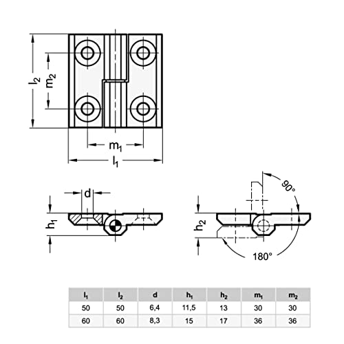 Ganter Normelemente Cerniere sospese | zinco pressofuso | GN 337-ZD-50-50-A-2-SW | 50 x 50 mm | arresto sinistro