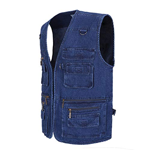 GAOHONGMEI Gilet da uomo multi tasca Reporters Fotografia Gilet con Cerniera Gilet senza maniche Retro Giacca Casual Denim Gilets-blu-3XL