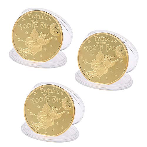 GAOHOU 3 pz Scintillio Dente Dente Fata Moneta commemorativa Moneta d'oro Collezione di Souvenir Moneta per Regali per Bambini Hobby