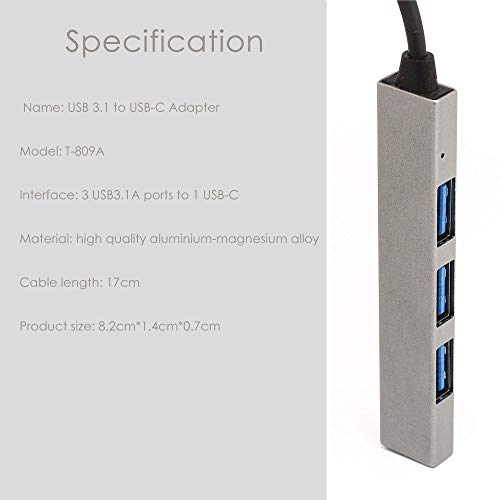 Gaoominy Adattatore USB-C Hub USB Type C 4 in 1 con 4 Porte USB 3.1 per PRO T-809A Grigio
