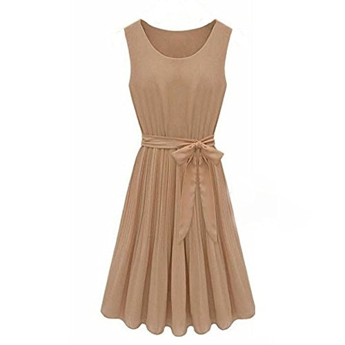 Gaorui Abito Donna, Lungo al Ginocchio, Estivo, Senza Maniche, Leggero, Elegante, con Fascia Cintura in Vita