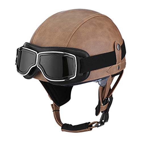 GAOZ Mezzi Caschi da Motociclista, Casco in Pelle Vintage Primavera E Autunno, Mezzo Casco ECE Omologato, Elmetto Tedesco retrò Adatto A Biciclette, Incrociatori, Ciclomotori, Scooter, S/M/L
