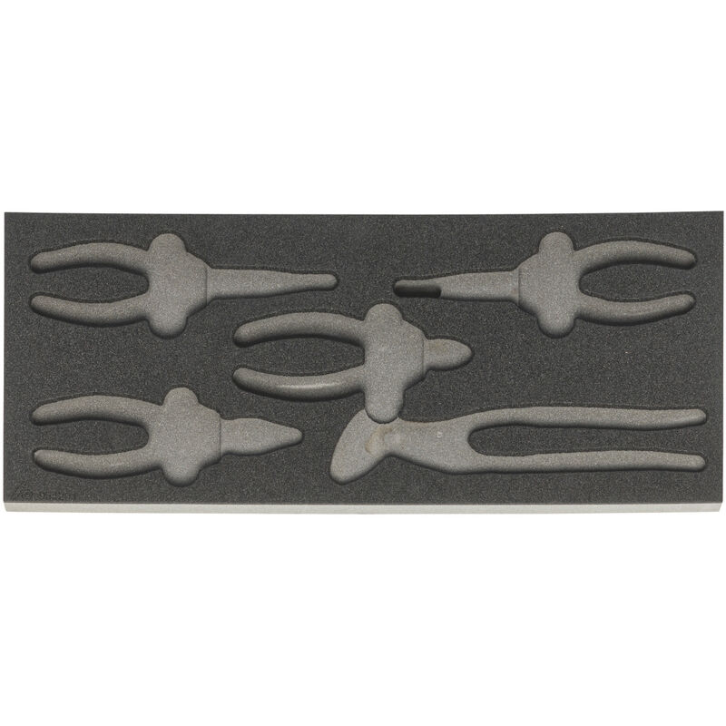 Assortimenti standard di utensili in alloggiamenti sagomati in espanso rigido bicolore in PE. La struttura non porosa dell'espanso è impermeabile e resistente agli oli. Strato superiore color antracite, quello inferiore di contrasto color grigio mette in evidenza gli utensili mancanti. Dati tecnici Tipo di prodotto Inserto in espanso rigido Larghezza in G 8 Profondità in G 20 Riempimento di un cassetto in G 8×20 Forma in espanso rigido LD45, spessore, mm 30 Larghezza, mm 200 Profondità, mm 500 Esecuzione vuoto per assortimenti di utensili