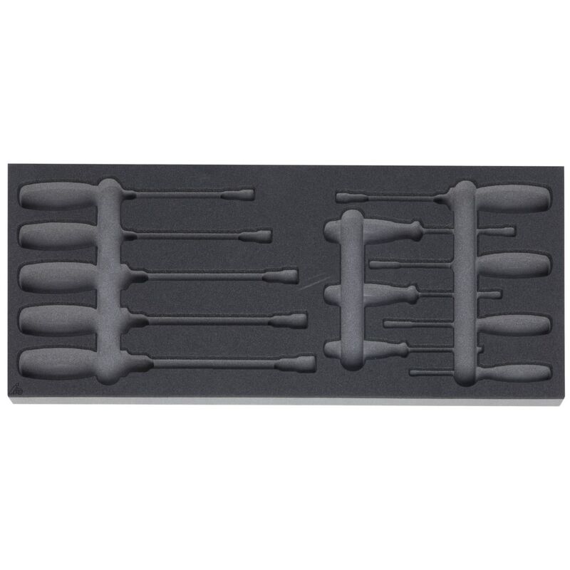 DescrizioneEsecuzione:Assortimenti standard di utensili in alloggiamenti sagomati in espanso rigido bicolore in PE. La struttura non porosa dell'espanso è impermeabile e resistente agli oli. Strato superiore color antracite, quello inferiore di contrasto color grigio mette in evidenza gli utensili mancanti.Dati tecnici Forma in espanso rigido LD45, spessore 30 mm Esecuzione vuoto per assortimenti di utensili Tipo di prodotto Inserto in espanso rigido Codice articolo 952001 952752 EAN / GTIN 4062406153502