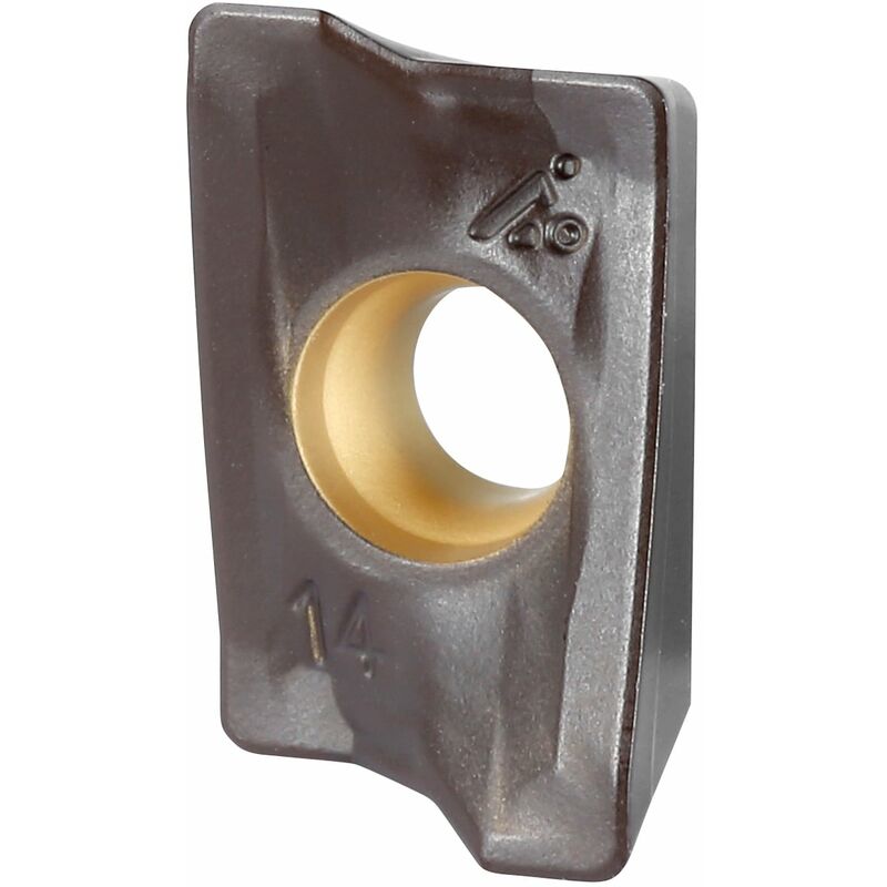 Nota: Valori indicativi per ae = 0,3×D / ap = 5 mm, ap max. = 9 mm. Dati tecnici a umido max. limitatamente adatto Acciaio < 1100 N/mm² m/min idoneo a secco idoneo Acciaio < 1400 N/mm² m/min idoneo Tipo HB7510 Materiale da taglio HM Codice ISO Inserto APMT 180504 SR Tipo di prodotto Inserti per fresatura USP2 HB7510 USP1 APMT 180504 SR Serie Softcut® Modello ST1400 Raggio di curvatura, mm 0,4 Avanzamento fz per dente, mm 0,25