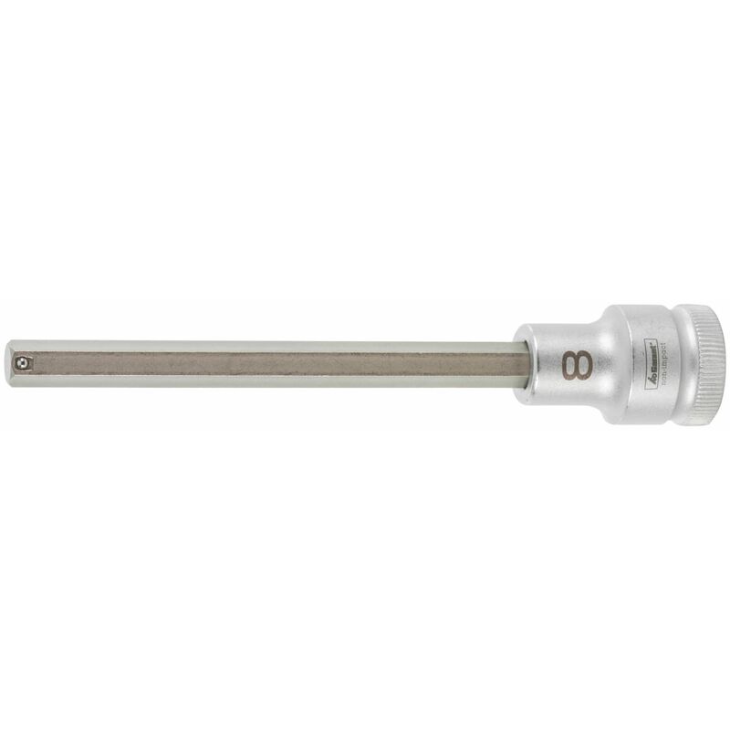 Costituite da due componenti. Corpo temprato in modo ottimale per l'assorbimento e la trasmissione della forza motrice. Quadro interno con tolleranze ridotte per una presa sicura e stabile sull'utensile di manovra. Quadro interno secondo DIN 3120. Vantaggi: Bussola esagonale con sfera di tenuta, per un solido serraggio della vite inserita. Norma: DIN 7422 Materiale: Acciaio al cromo-vanadio, cromato opaco. Dati tecnici Quadro di manovra femmina Zoll 1/2 Tipo di prodotto Bussola Lunghezza, mm 140 Esagono, mm 8 ⌀ Lato azionamento, mm 23,5