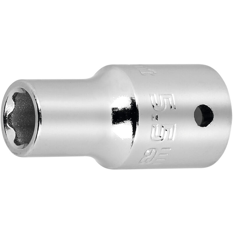 Forgiate in acciaio di alta qualità, svasate internamente per una rapida presa sulle teste delle viti. Quadro femmina con foro a norma DIN 3120-D 6,3. La bocca Surface Drive permette un accoppiamento più preciso e un'azione più efficace. La pressione viene esercitata direttamente sulla superficie dei dadi e delle viti, affinché i bordi delicati non vengano danneggiati. Con Surface Drive è anche possibile stringere o allentare sia viti di misure intermedie, per esempio in pollici (A/F, BSF, BSW) sia viti usurate. Bussole con foro di tenuta. Materiale: Acciaio al cromo-vanadio, cromato. Dati tecnici Con profilo AS-drive no Superficie cromato Quadro di manovra femmina Zoll 1/4 Materiale Acciaio al cromo-vanadio Norma DIN 3124 Profilo chiavi esagonali Surfacedrive Tipo di prodotto Bussola Apertura, mm 5,5 Lunghezza, mm 24,8 Per misure in pollici (misure americane), Zoll 13/64 ⌀ Lato uscita, mm 8,7