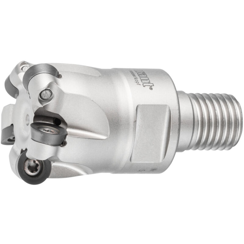 Passo fresa con incremento asimmetrico per rotazione più regolare. * Elevata precisione di planarità e rotazione concentrica. * Riposizionamento continuo dell'inserto in caso di usura del tagliente. Riduzione delle vibrazioni e ingresso morbido dei taglienti grazie al posizionamento di 7° dell'inserto. Nota: Usare il giravite dinamometrico GARANT TQ n. art. 211750 Dim. 3,8 con lama n. art. 674252 Dim. 15IP. ap max. = 2,5 mm. Dati tecnici Sostituzione del materiale PowerCard Fresa adatta per le forme di inserti tonda Esecuzione del codolo con codolo filettato Passo dei taglienti differente Tipo di prodotto Fresa a copiare (RD..10) USP1 con codolo filettato Passaggio interno per LR sì Numero taglienti Z 5 Lunghezza complessiva Lcompl., mm 42 ⌀ D2, mm 28,7 Inserto adatto RD..1003 ⌀ D3, mm 25 Set di viti per inserti 219804 (15IP;
