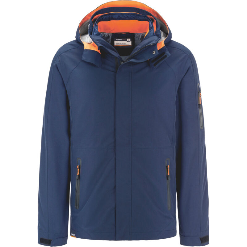 Giacca active finemente lavorata con esterno in resistente laminato a 2,5 strati. Traspirante, impermeabile e antivento. La giacca può essere abbinata a una giacca loft (n. art. 090608) o alla giacca in Fleece pesante (n. art. 090613) mediante il sistema zip-in, per ottenere una calda giacca combi 3 in 1. I polsini regolabili con chiusura a strappo, nonché la cintura con cordoncino per la regolazione della larghezza garantiscono un'indossabilità ideale. Cuciture sigillate per la massima impermeabilità sempre. Con cappuccio rimovibile e parte posteriore allungata per un comfort maggiore. * Chiusura lampo anteriore a due vie di YKK® con protezione per il mento. * Tasche laterali con chiusura lampo impermeabile. * Tasca sulle maniche con chiusura lampo. Per: Giacca loft GARANT, n. art. 090608. Giacca in Fleece pesante GARANT, n. art. 090613. Dati tecnici Grammatura del materiale / spessore del tessuto g/m2 294 Tipo di prodotto Giacca in softshell Lavaggio Lavaggio delicato 30 °C Colore