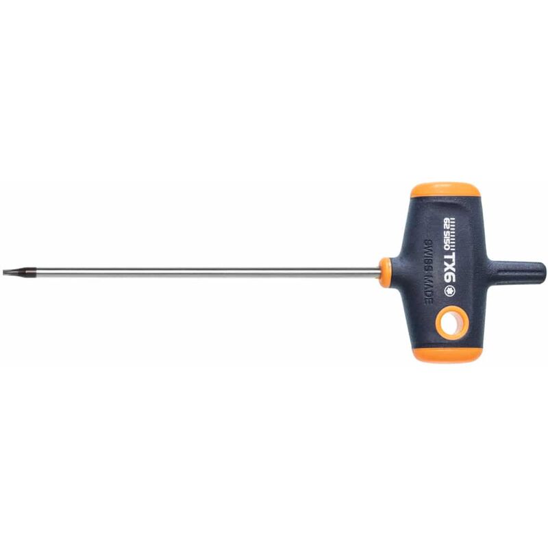 Impugnatura a T dalla forma ergonomica con superficie antiscivolo in Haptoprene® e nocciolo in plastica antiurto. Lama in lega speciale al cromo-vanadio. Superficie nichelata e cromata, punta brunita. Dim. TX20 - TX40 con uscita laterale. Dati tecnici Tipo di prodotto Giravite Lunghezza complessiva, mm 145 Lunghezza lama, mm 100 Impronta Torx® TX6